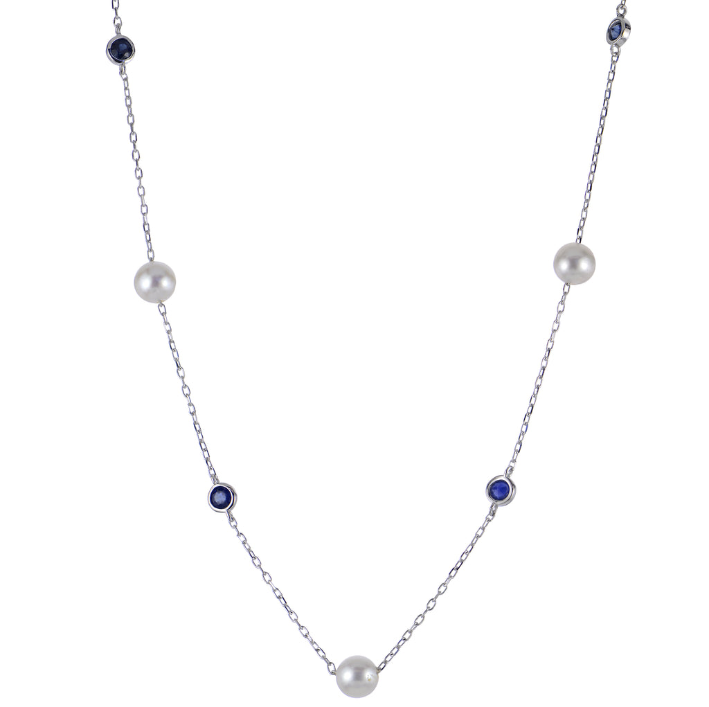 18"/16" 14KW 5.5-6MM AKOYA CP & BLUE SAPPHIRE NECKLACE