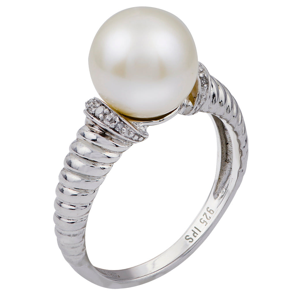 STERLING SILVER 9-10MM FRESHWATER PEARL & DIAMOND RING