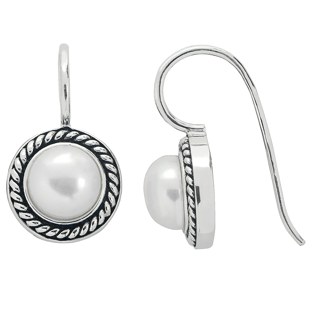 Sterling silver 7.5-8mm freshwater cultured button cultured pearl oxidized earrings.
