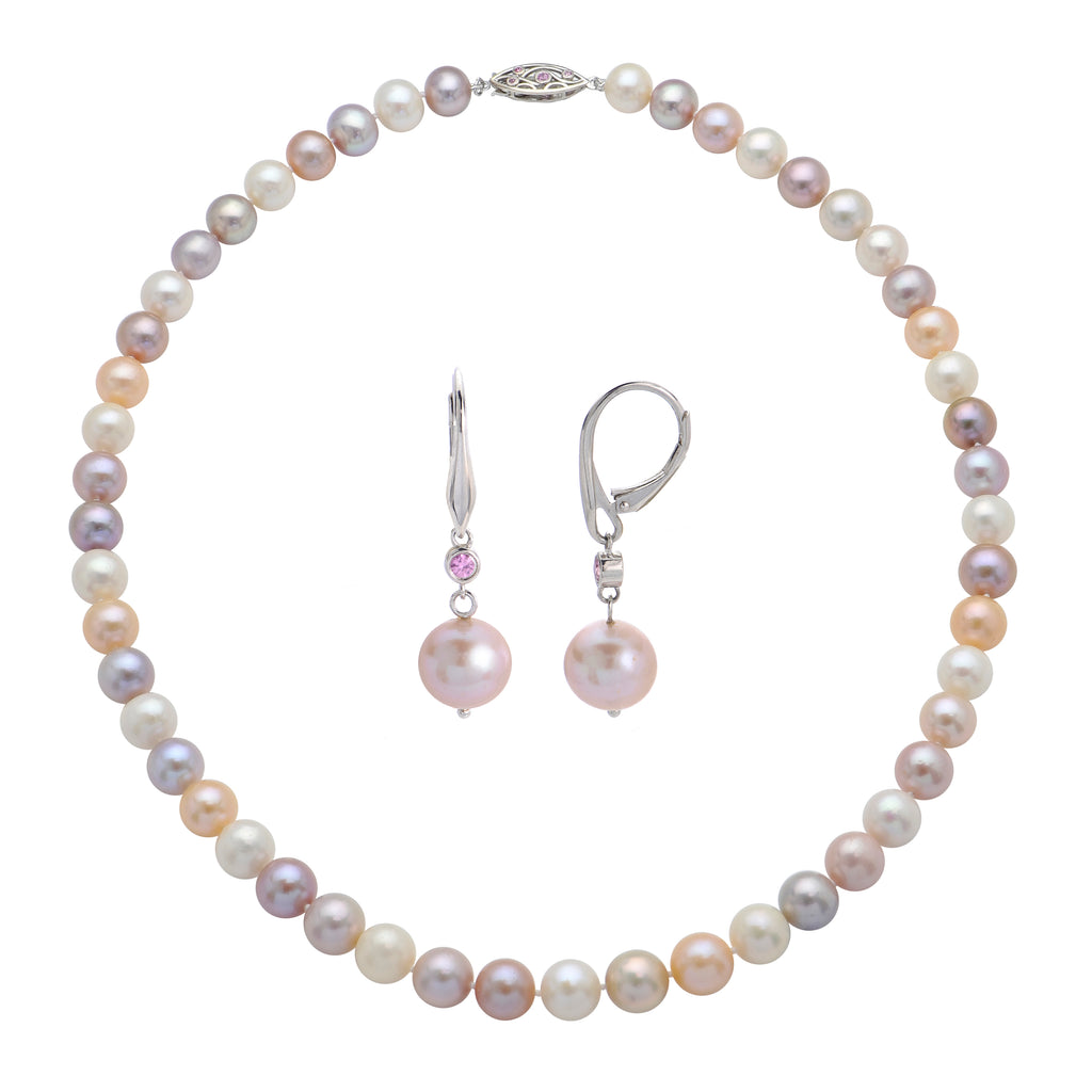 20" 925 MULTI FWCP & PINK SAPPHIRE FANCY CLASP / MATCHING NAT PINK DANGLE DROP EARRINGS SET