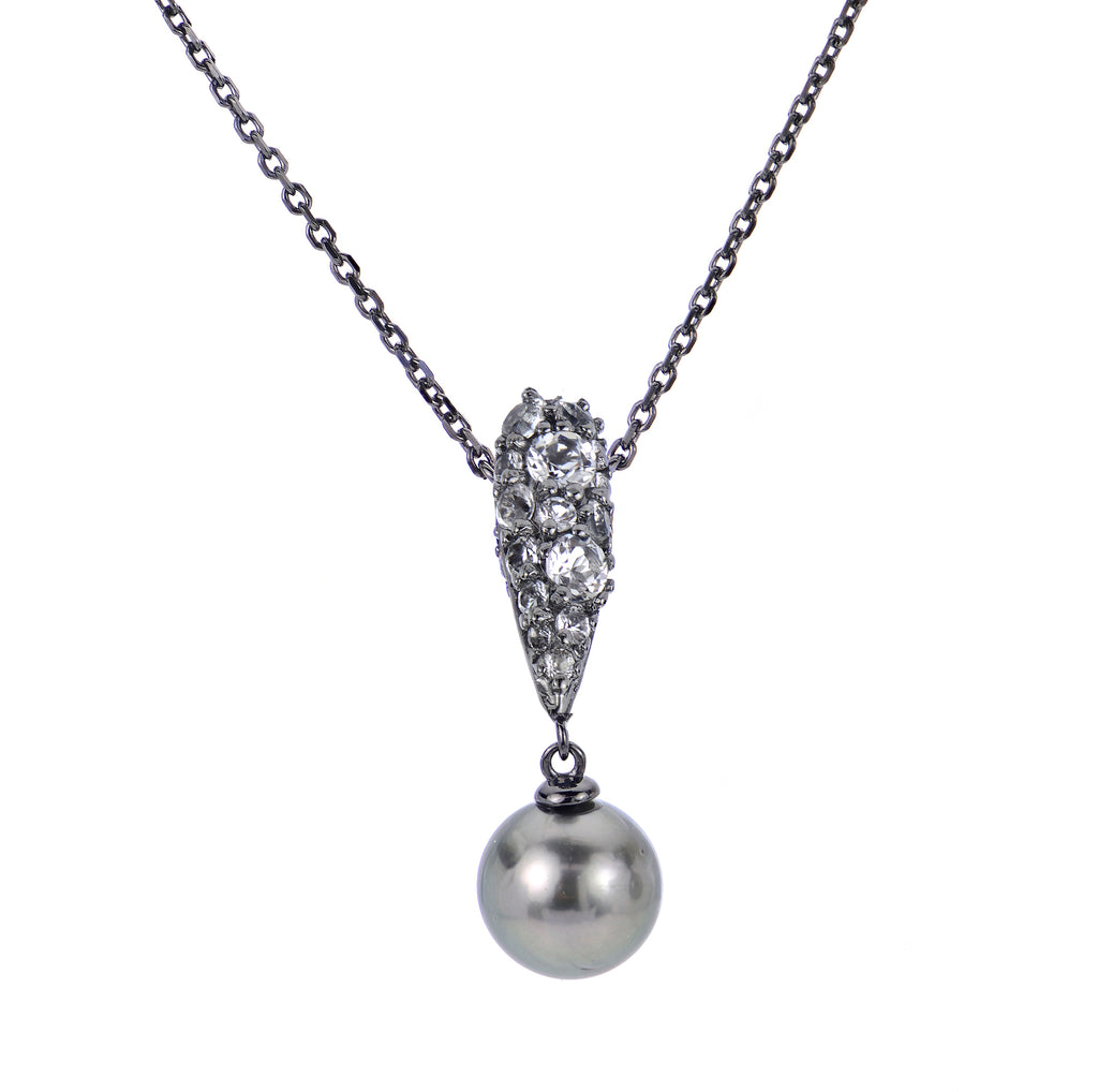 18" 925 BLK RHD 8-9MM TAHITIAN & WHITE TOPAZ NECKLACE