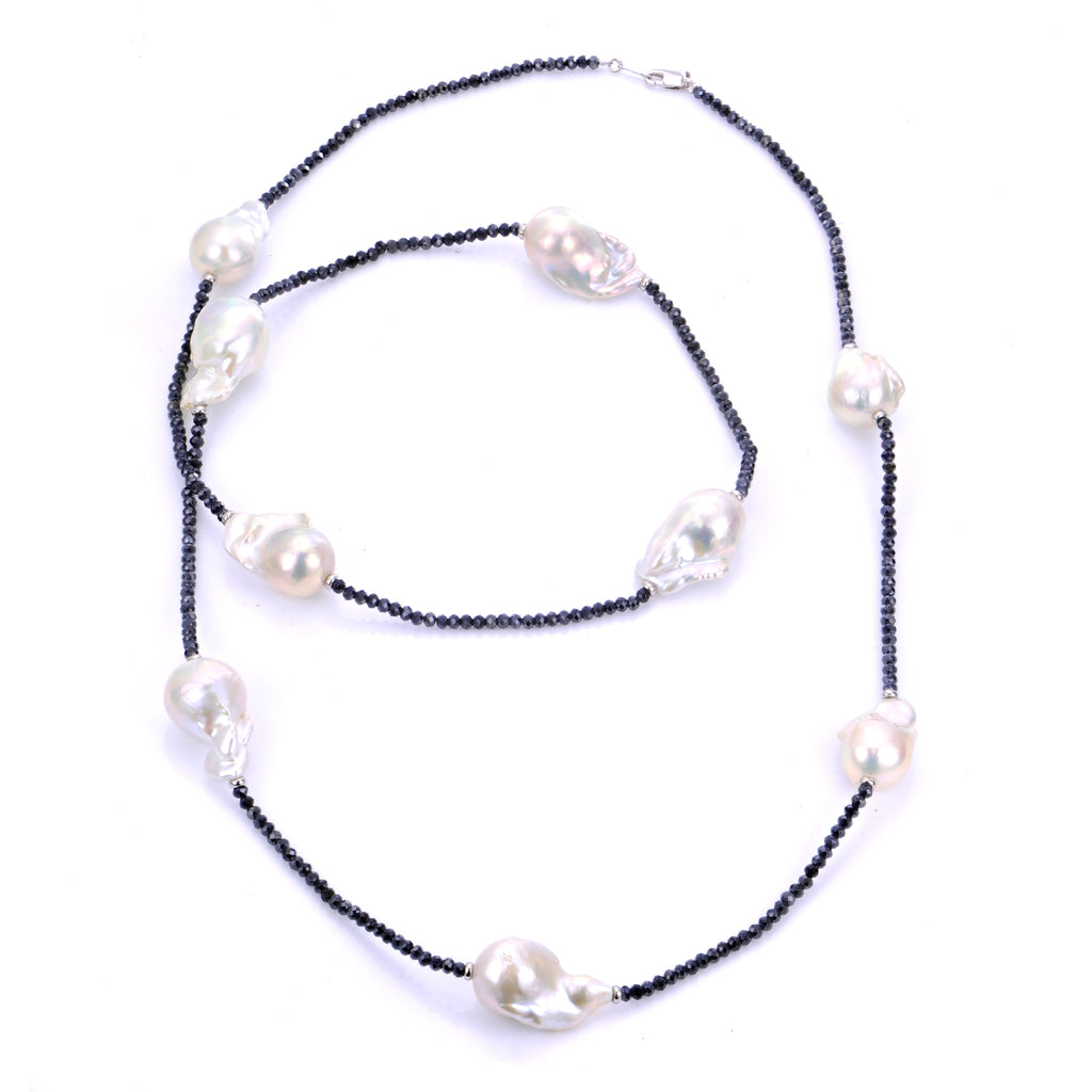 36" 925 13-15MM IN WHITE BAROQUE PRL & BLACK SPINEL NECKLACE