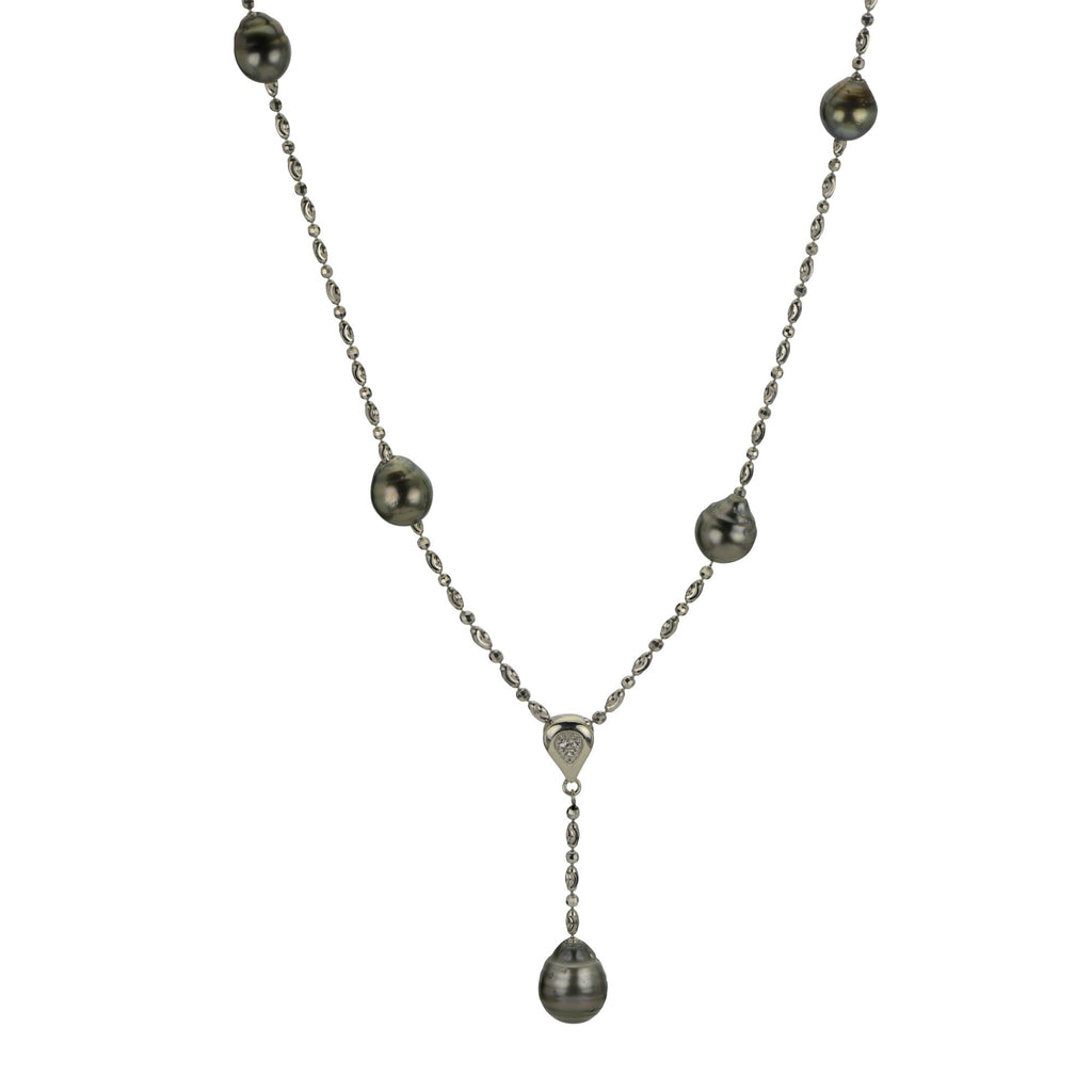18" 925 8-10MM TAHITIAN CULT PEARL & WHITE TOPAZ "Y" NECKLACE