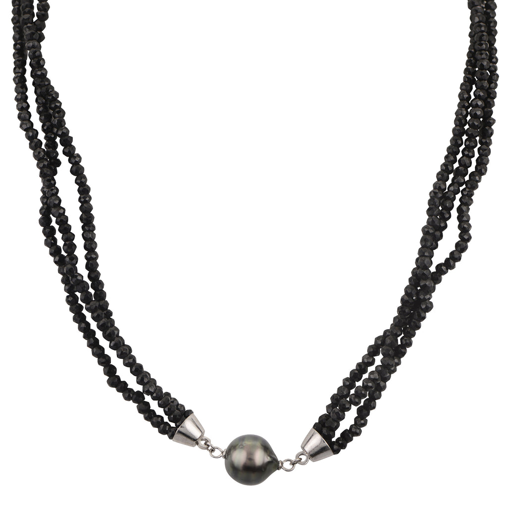 18" + 2" 925 11-12MM TAHITIAN & BLACK SPINAL NECKLACE