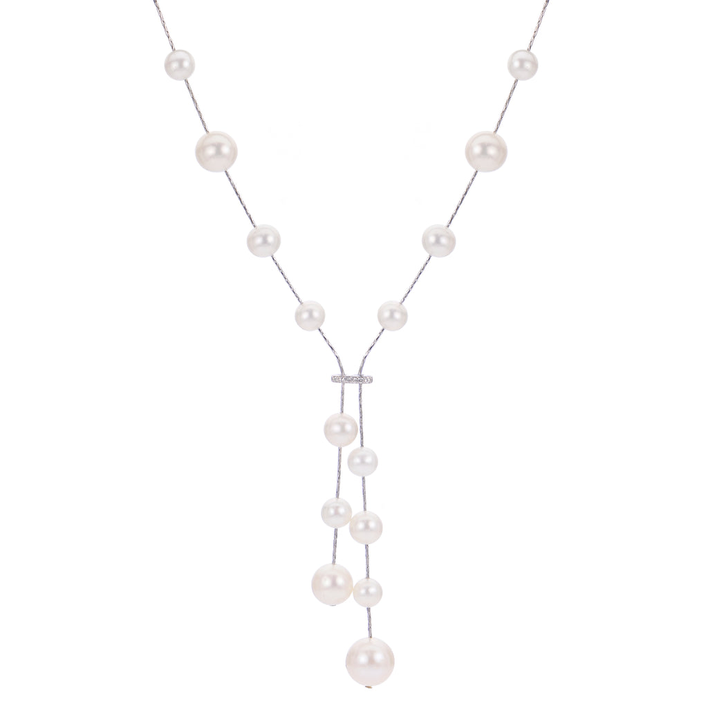 925 18" 5-9MM FWP & DIA ACCENT ILLUSION LARIAT NECKLACE