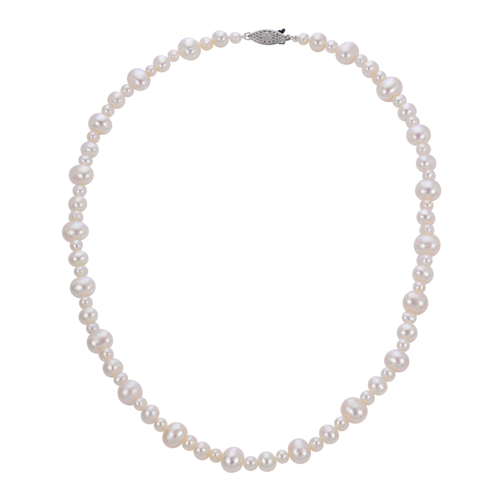 18" mixed shape 4-8mm freshwater cultured pearl necklace with sterling silver clasp.