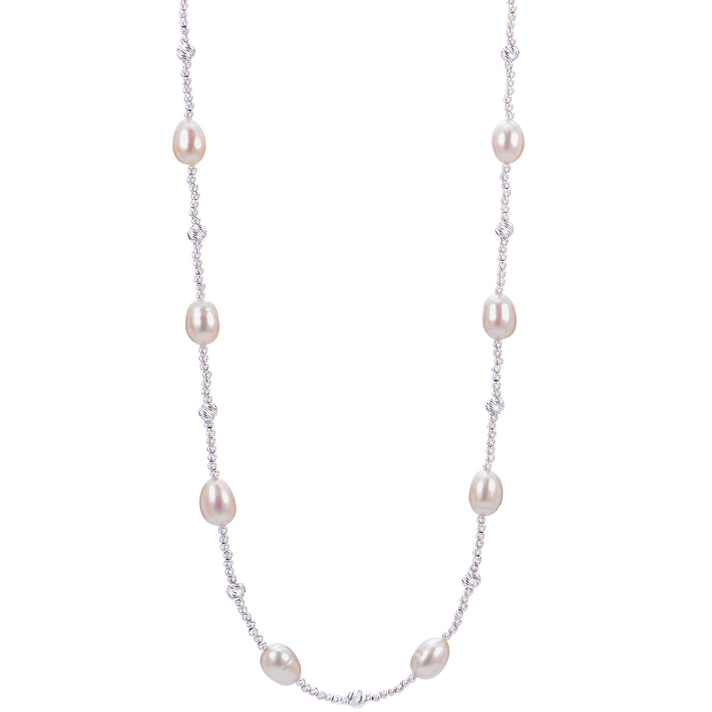 32" 925 8-8.5MM FWCP & BRILLIANCE BEAD NECKLACE LOBSTER CLASP