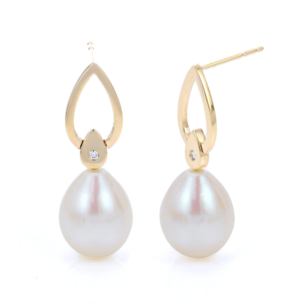 14KY 9-10MM FW CULT PEARL & DIA EARRING
