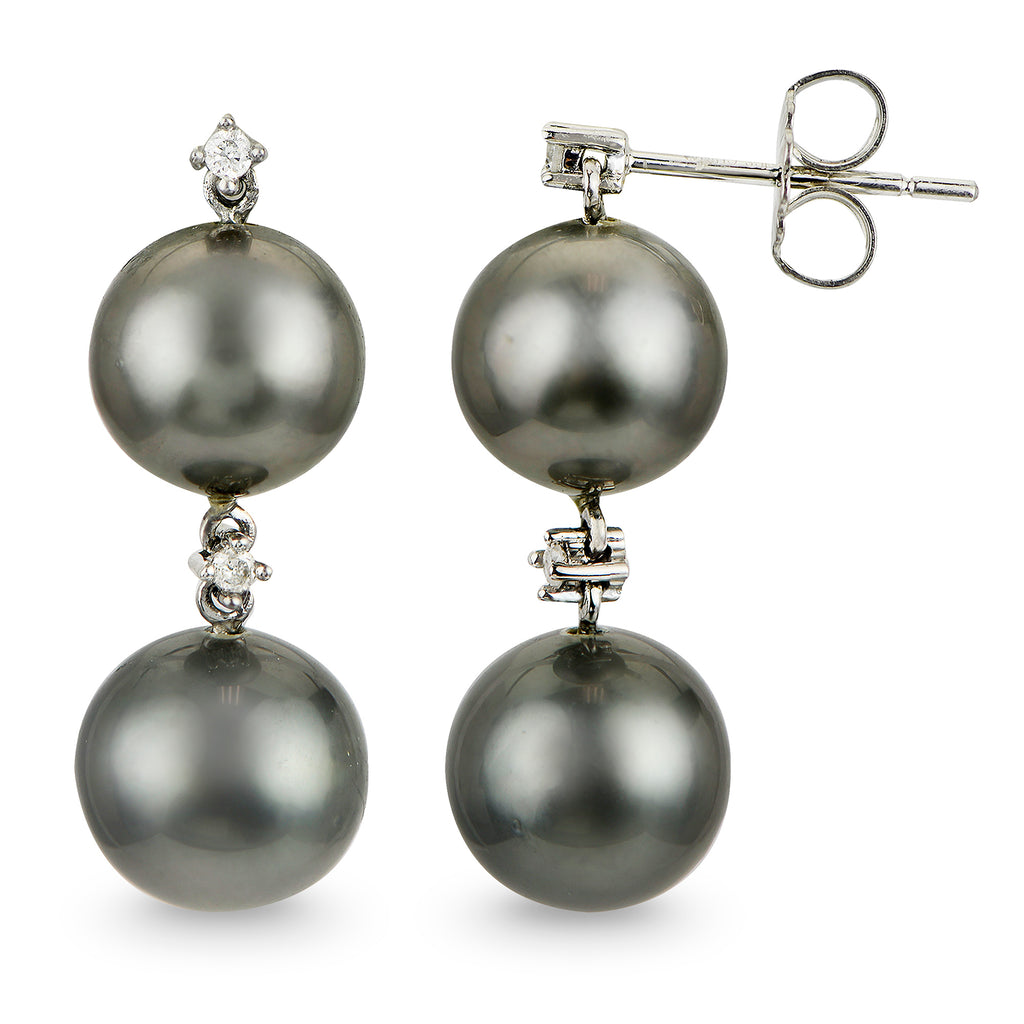 14KW 8-9MM TAHITIAN & DIAMOND DOUBLE DROP EARRINGS