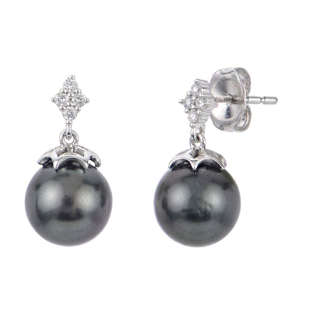 14KW 8-9MM TAHITIAN PEARL DIAMOND (0.08CTTW) EARRING