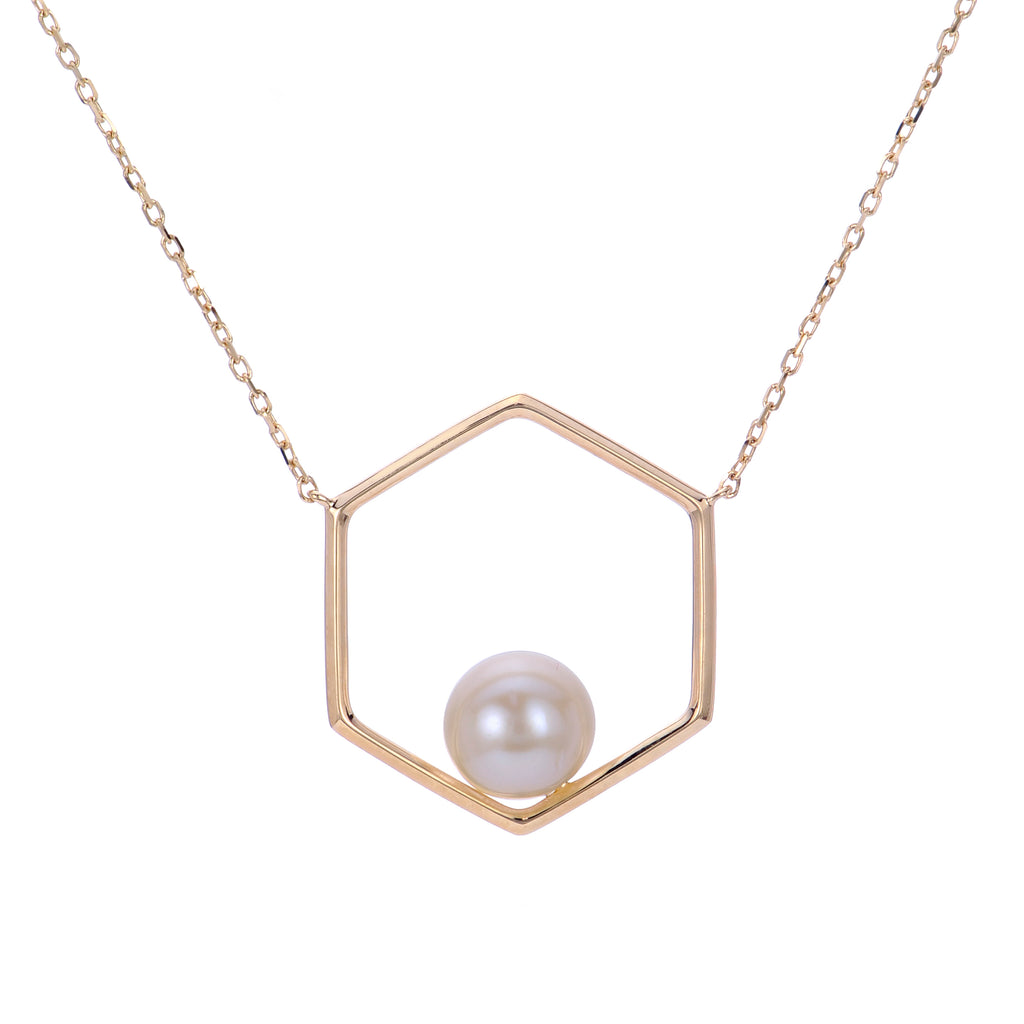 18" 14KY 6.5-7MM FW CULT PEARL GEOMETRIC NECKLACE