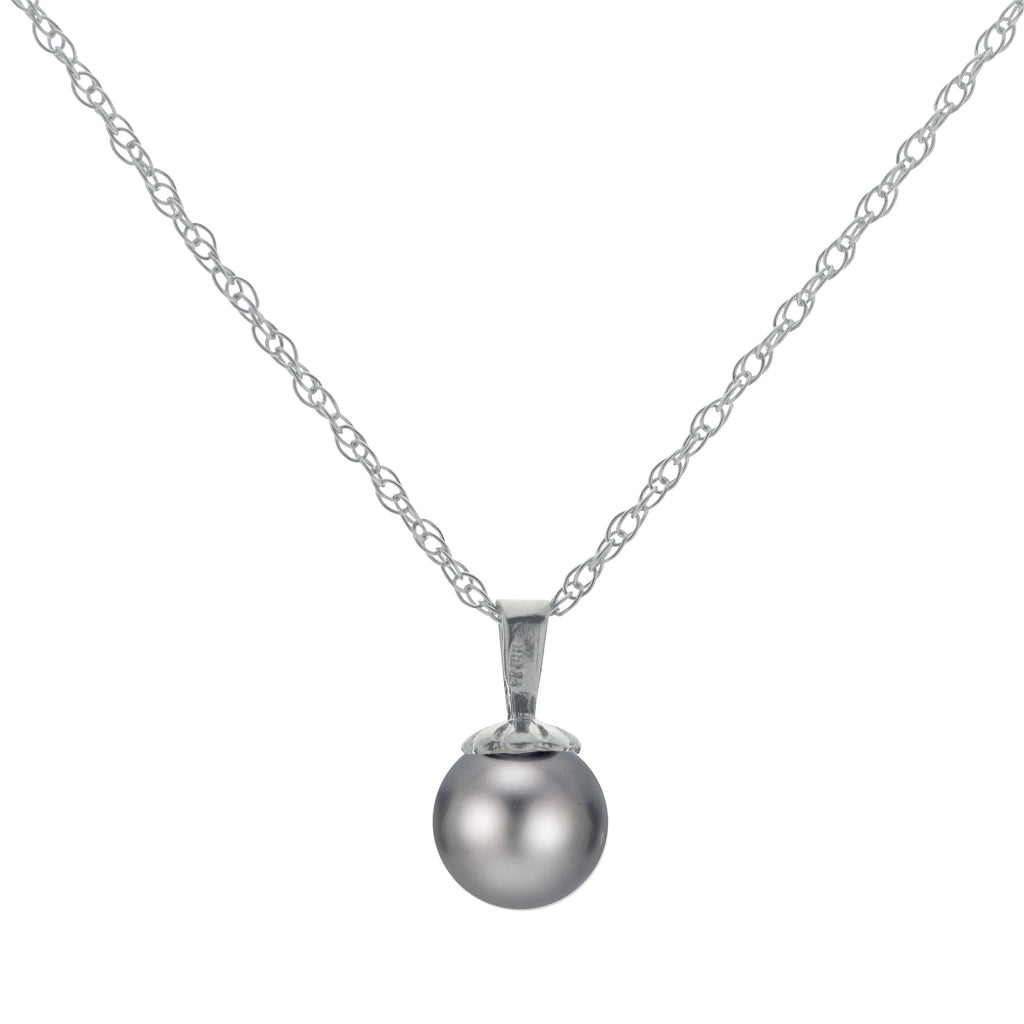 14K white gold 6-6.5mm black akoya cultured pearl pendant on 18" rope chain.