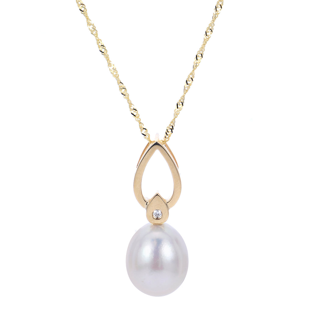 18" 14KY 10-11MM FW CULT DROP PEARL DIA PENDANT ON SINGAPORE CHAIN